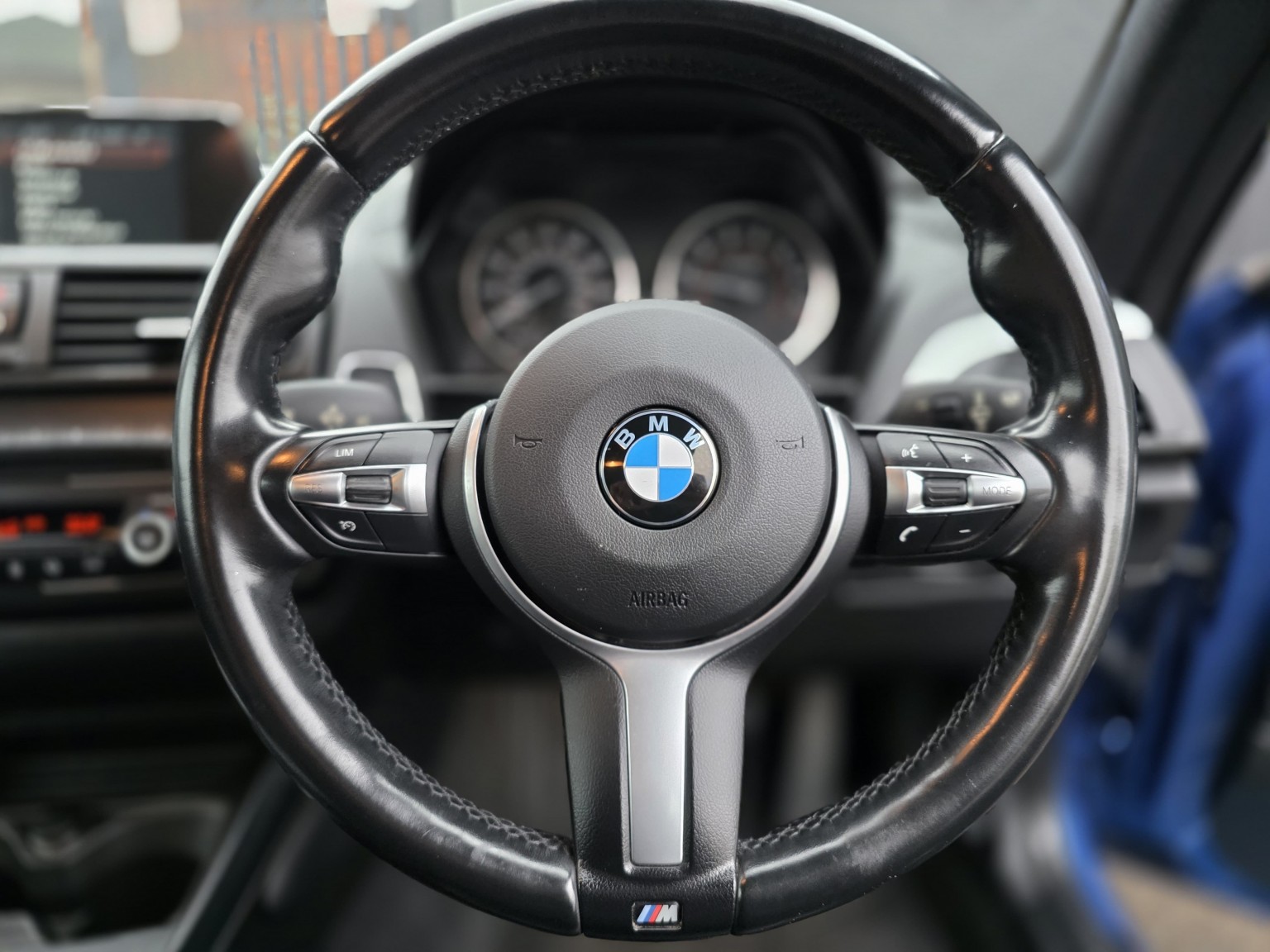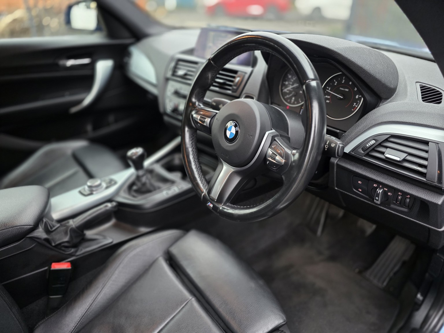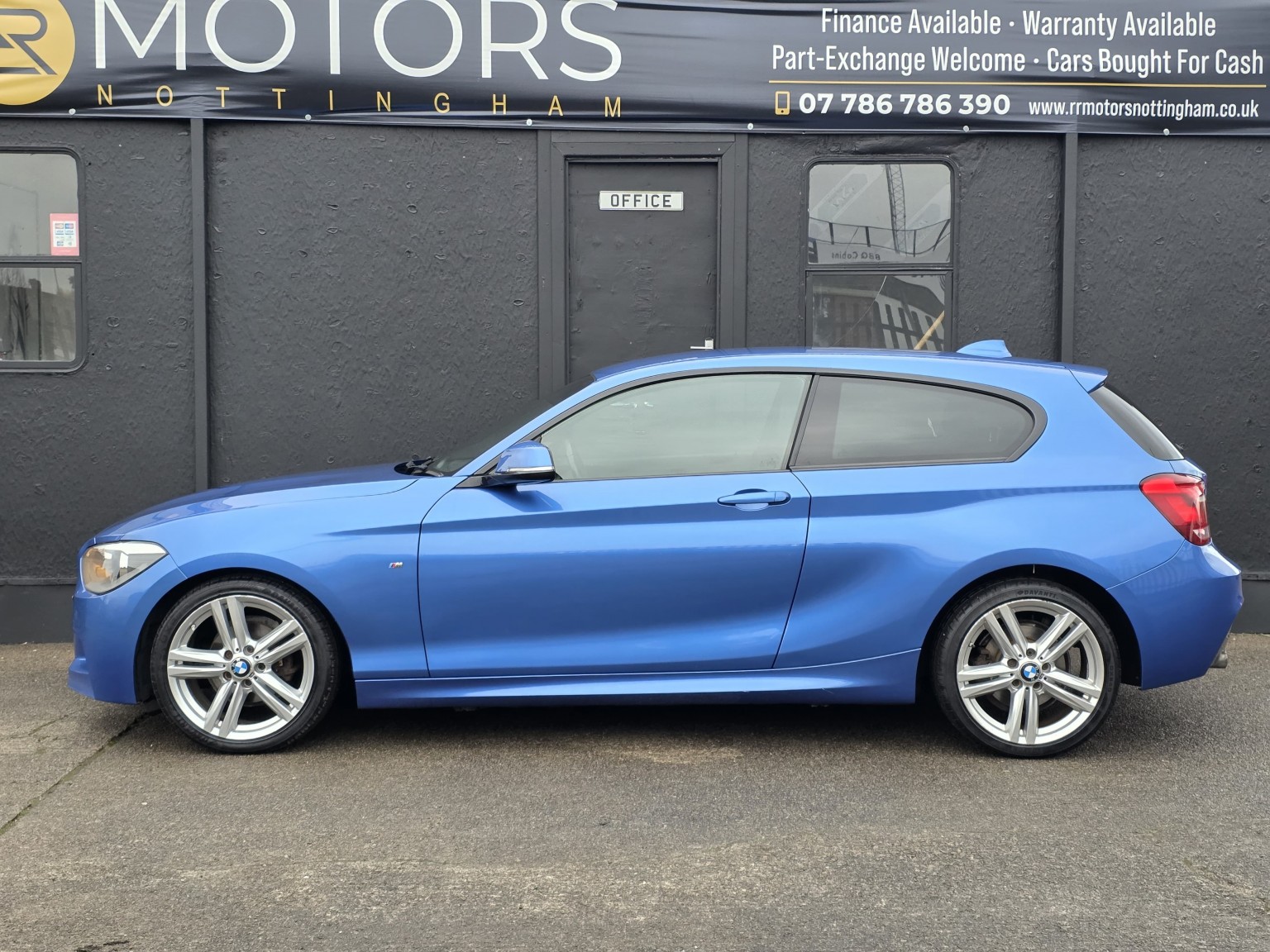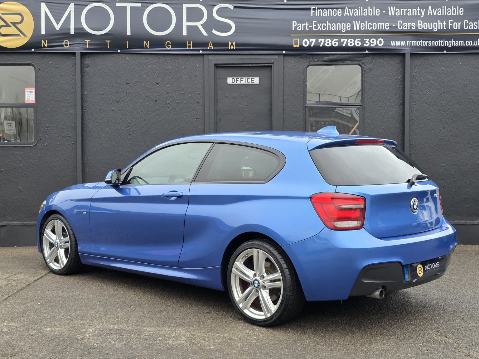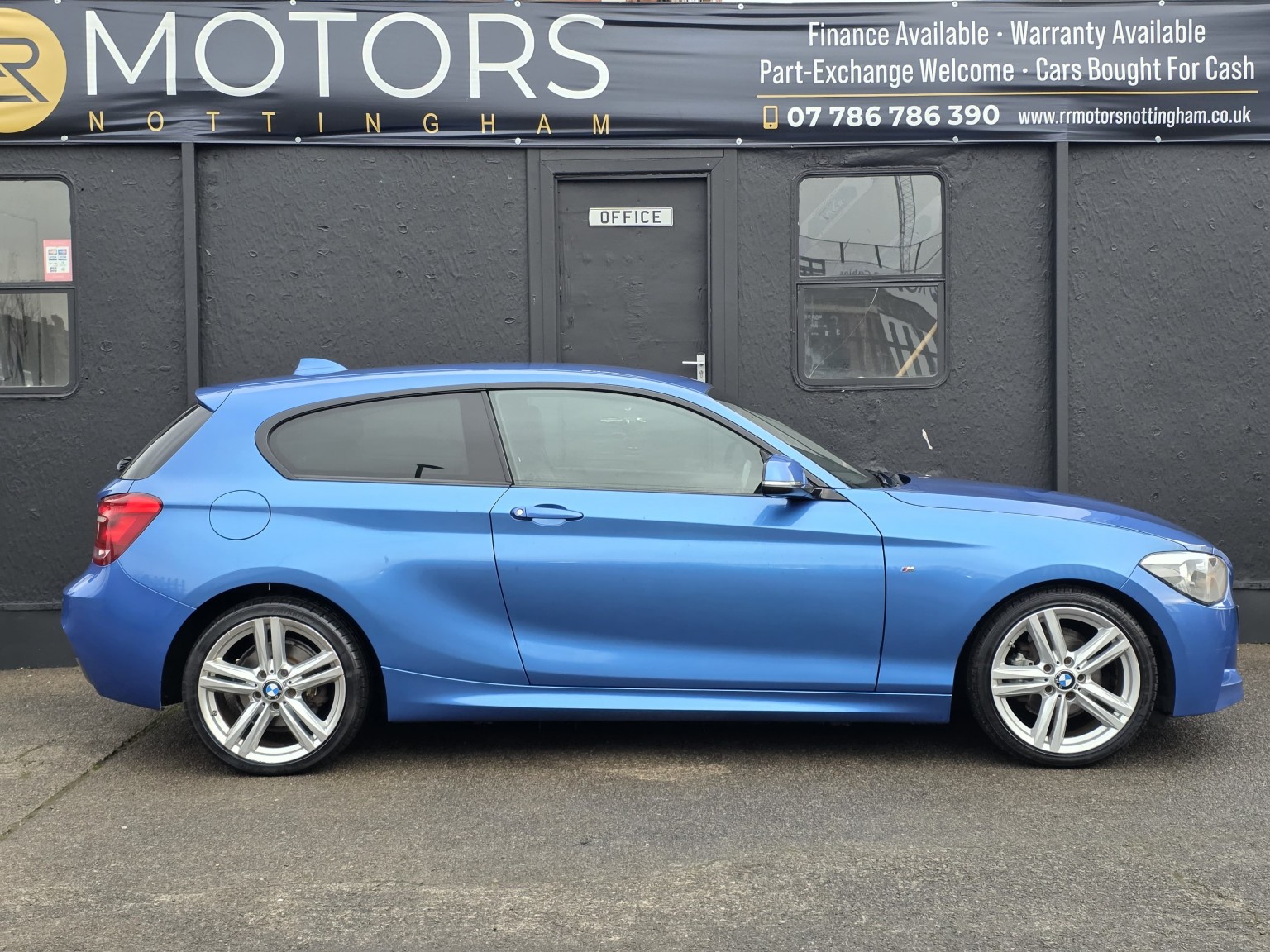 Great looking 1 Series M Sport finished in the popular Estoril Blue. Really good condition, the car has been really well looked after, drives perfectly. Just had over £1k worth of work spent on it, no expence spared. New brakes, 12 months MOT. Full leather interior, 18" alloys, navigation, parking sensors, privacy glass. 6 speed gearbox which offers brilliant economy and performance. 2 keys.